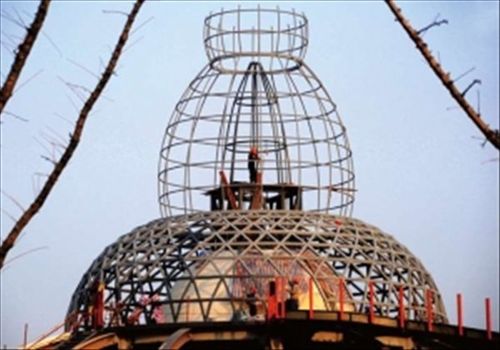 可不要認(rèn)為用竹藤做建筑材料是很簡單的事。在以“零化學(xué)物質(zhì)”著稱的印度館內(nèi)使用了世界上最大的竹制穹頂:一根跨度逾三十四米的頂梁,要用竹材加工出弧度來,其難度可想而知。竹子最終能夠“挑大梁”,實際上是利用現(xiàn)代工藝和科技對傳統(tǒng)材料進行再加工的結(jié)果。